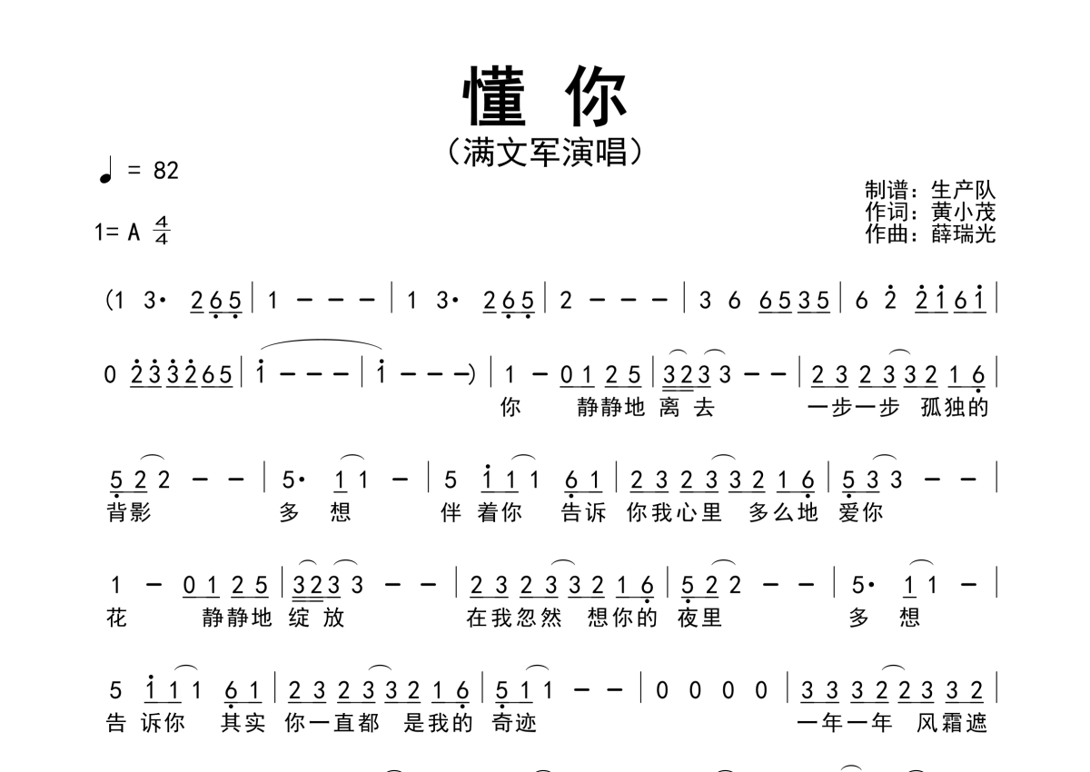 满文军《懂你》简谱