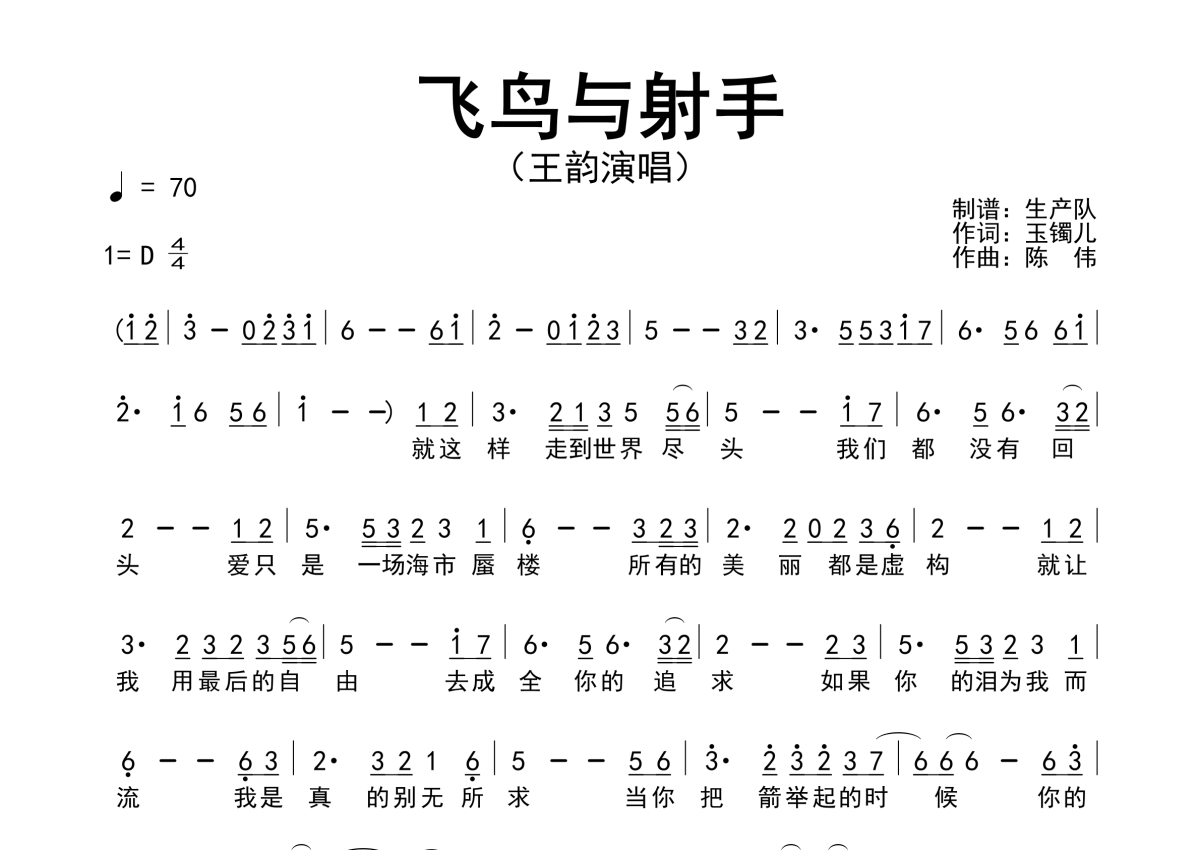 王韵《飞鸟与射手》简谱
