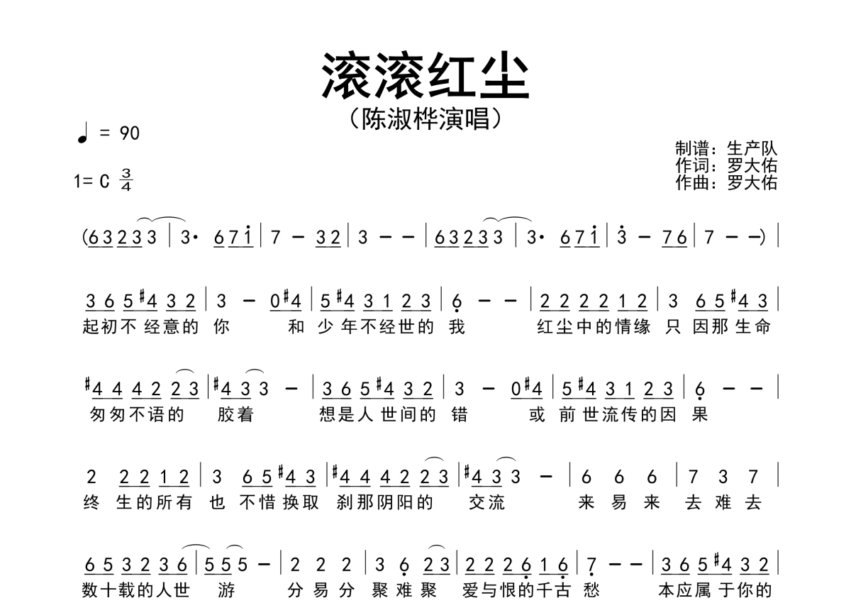《滚滚红尘》是陈淑桦演唱的一首歌曲,简谱,拍号为3/4拍,歌曲速度为每分钟90拍,这份简谱共有一张高清图谱,图谱由 @生产队 编配上传陈淑桦演唱的歌曲《滚滚红尘》简谱。