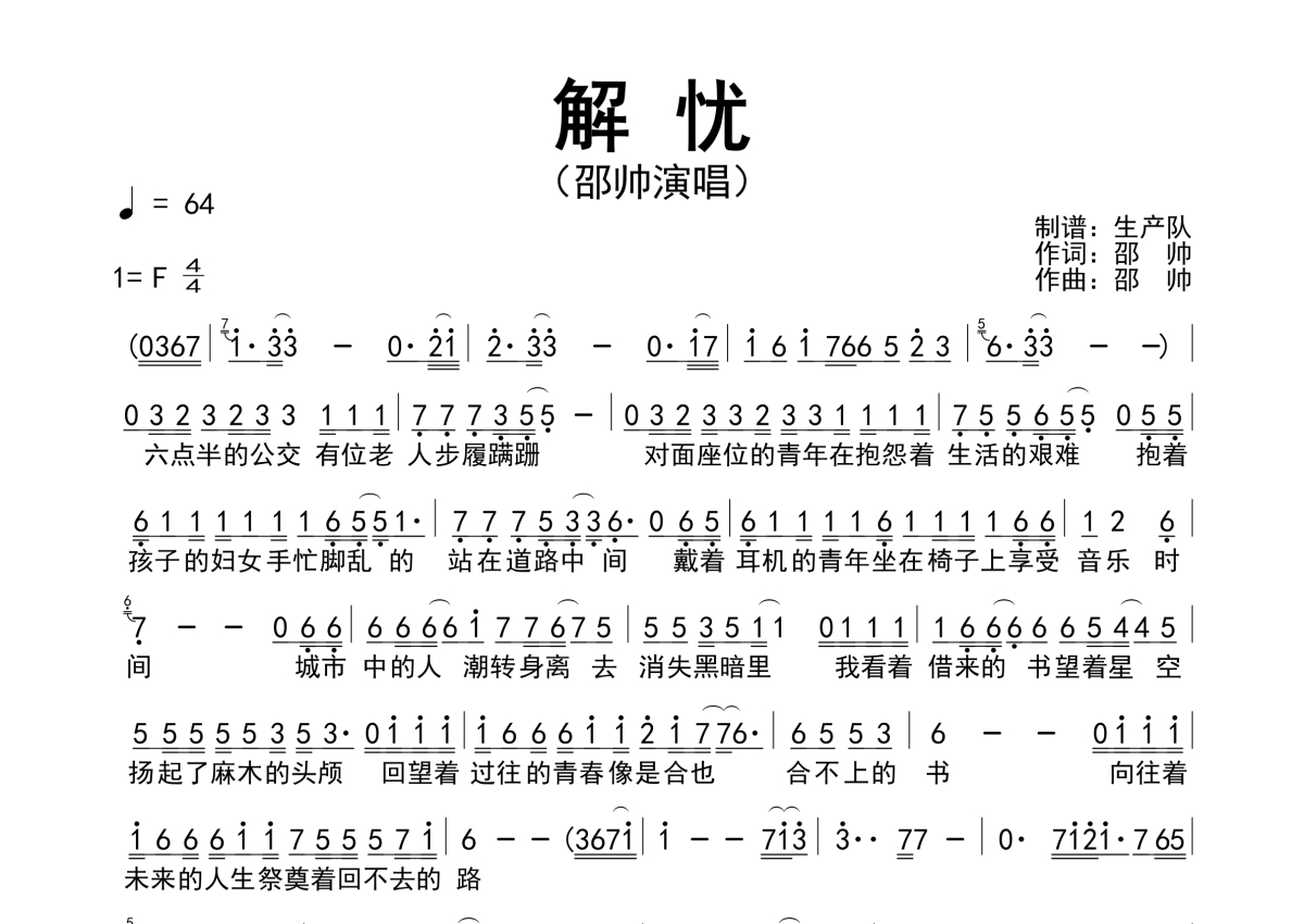 解忧邵帅《解忧》简谱