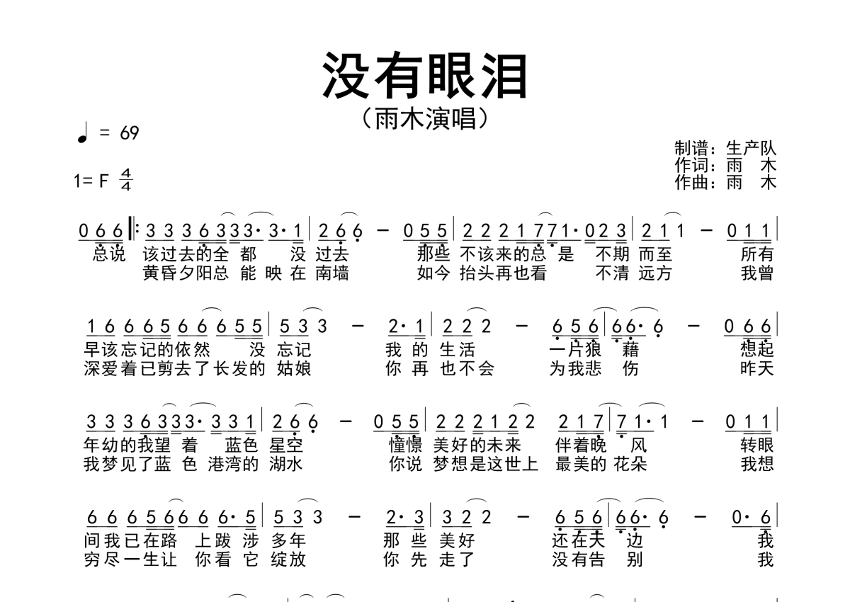雨木《没有眼泪》简谱