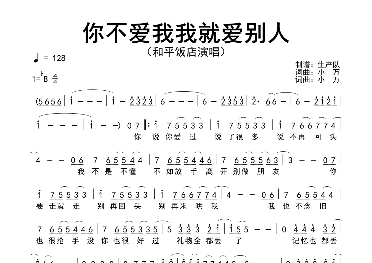 和平饭店《你不爱我我就爱别人》简谱
