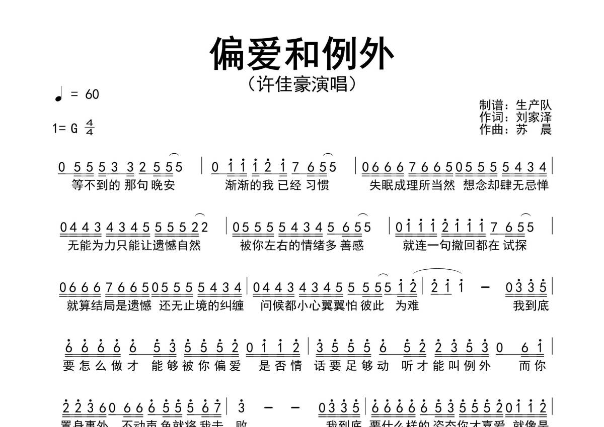 许佳豪《偏爱和例外》简谱
