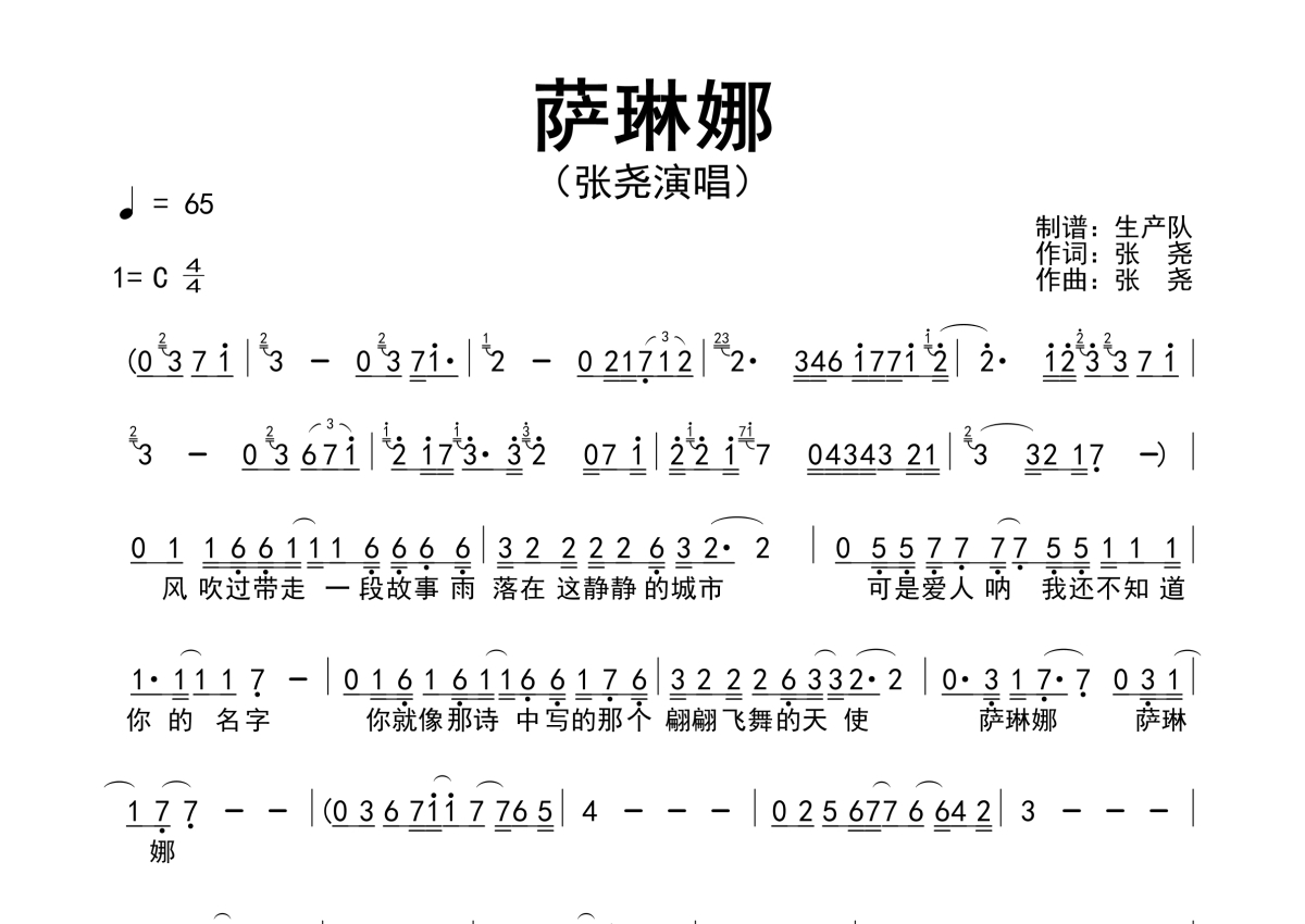 张尧《萨琳娜》简谱