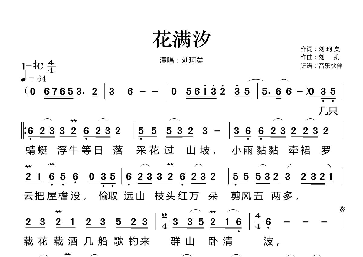 《花满汐》是刘珂矣演唱的一首歌曲,这份简谱共有一张高清图谱,图谱由 @音乐伙伴 编配上传。