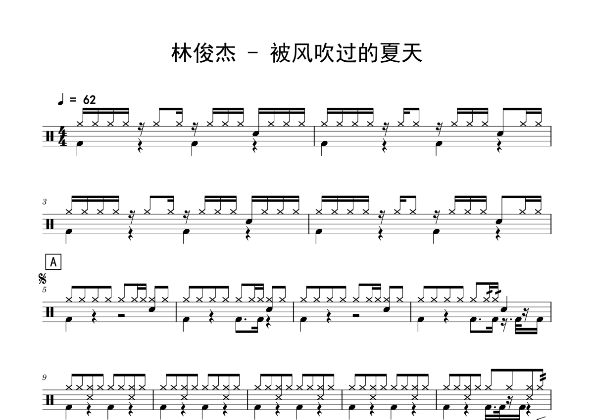 林俊杰《被风吹过的夏天》架子鼓谱