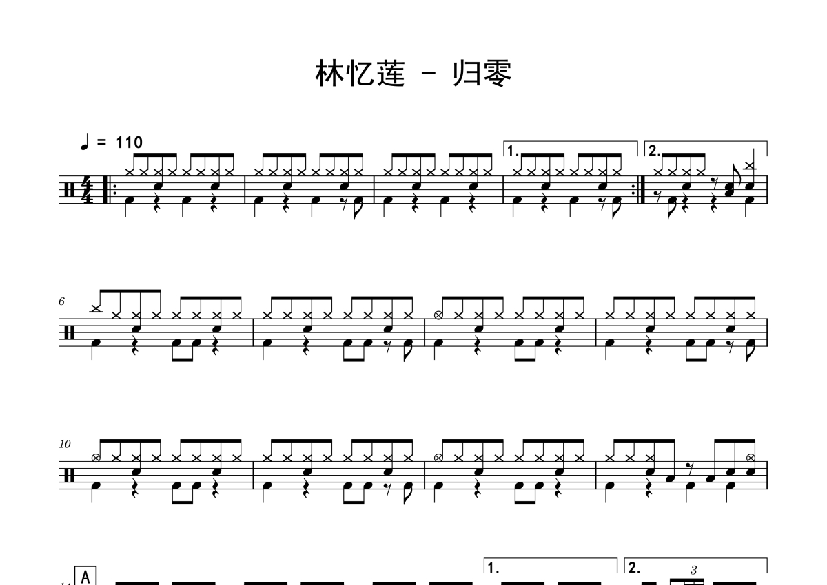 《归零》是林忆莲演唱的一首歌曲,这份架子鼓谱共有三张高清图谱,图谱由 @Sawubona 编配上传,图谱使用五线谱编配,使用这份归零架子鼓谱,你将能够轻松地敲打出这首林忆莲的归零,快来尝试吧。