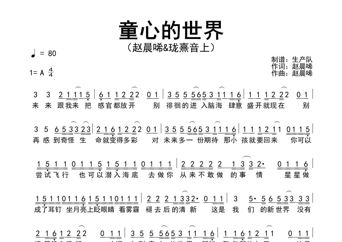 赵晨唏/珑熹音上《童心的世界》简谱