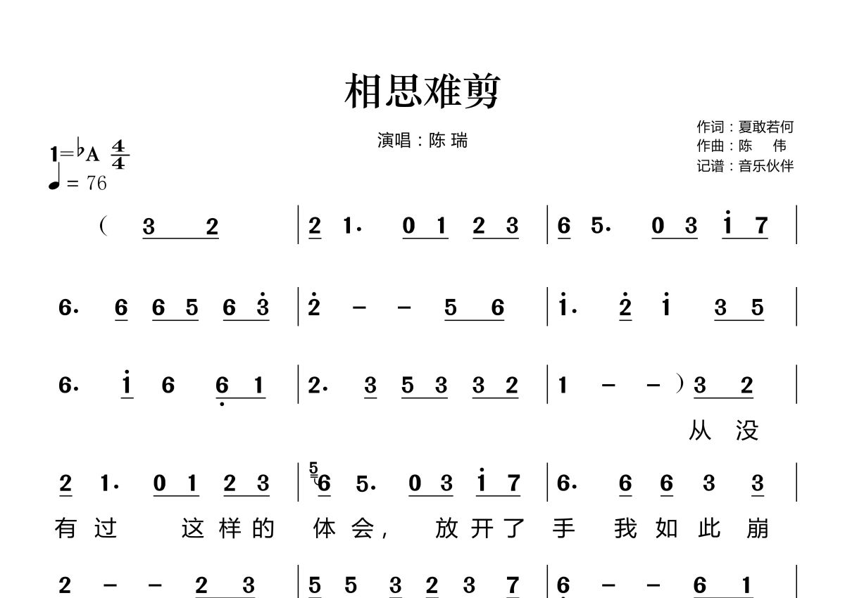 《相思难剪》是陈瑞演唱的一首歌曲,这份简谱共有两张高清图谱,图谱由 @音乐伙伴 编配上传。