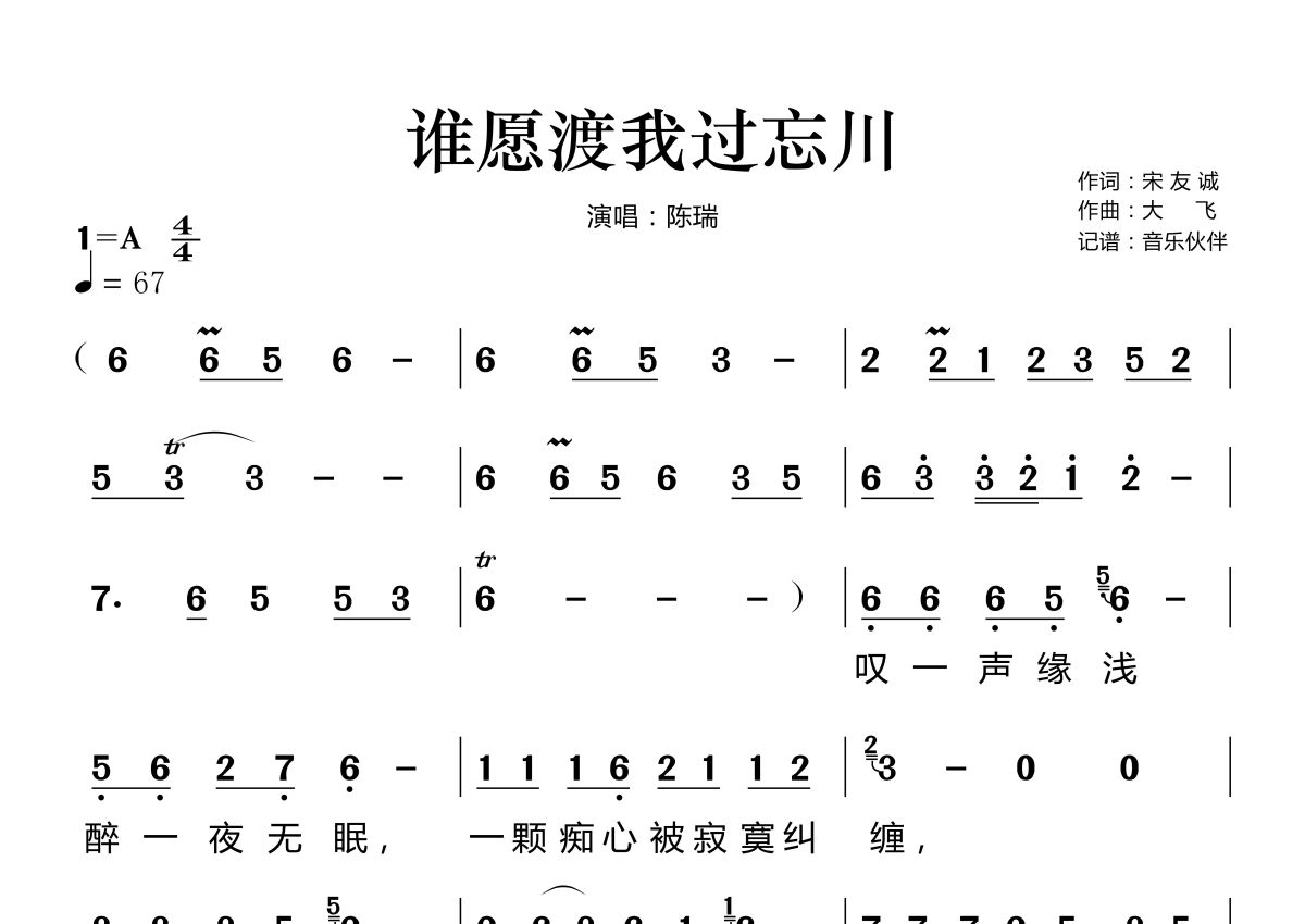 谁愿渡我过忘川简谱 - 陈瑞演唱