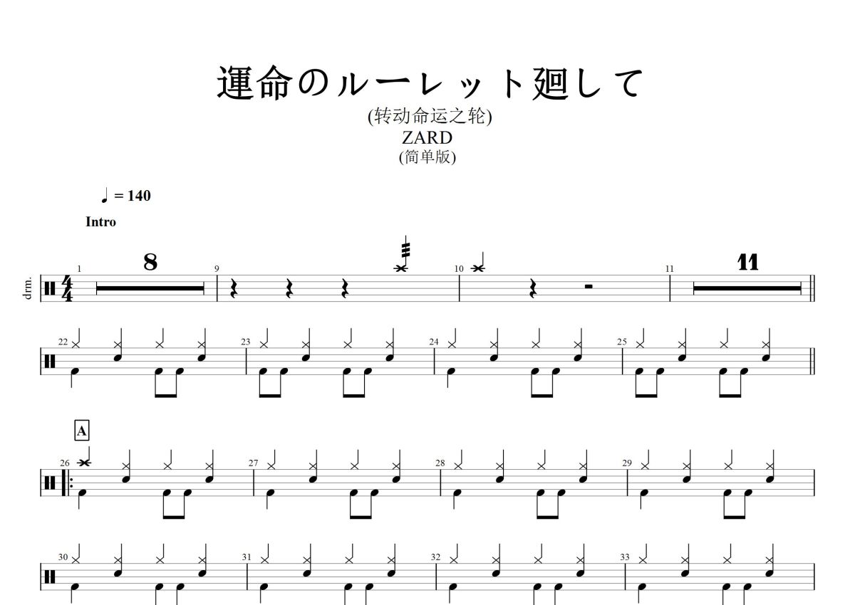 《運命のルーレット廻して》是ZARD演唱的一首歌曲,这份鼓谱共有三张高清图谱,图谱由 @打鼓谱 编配上传,图谱使用五线谱编配,使用这份運命のルーレット廻して架子鼓谱,你将能够轻松地敲打出这首ZARD的運命のルーレット廻して,快来尝试吧。《运命のルーレット廻して》(转动命运之轮)是日本乐队ZARD演唱的歌曲,由坂井泉水作词,栗林诚一郎作曲,古井弘人、池田大介编曲,收录在ZARD的同名EP中,于1998年9月17日发行。