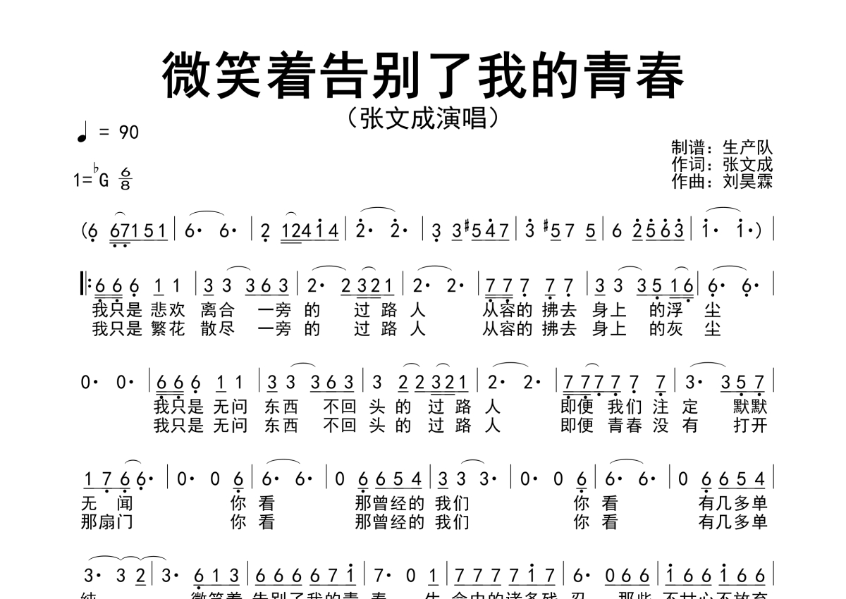 张文成《微笑着告别了我的青春》简谱