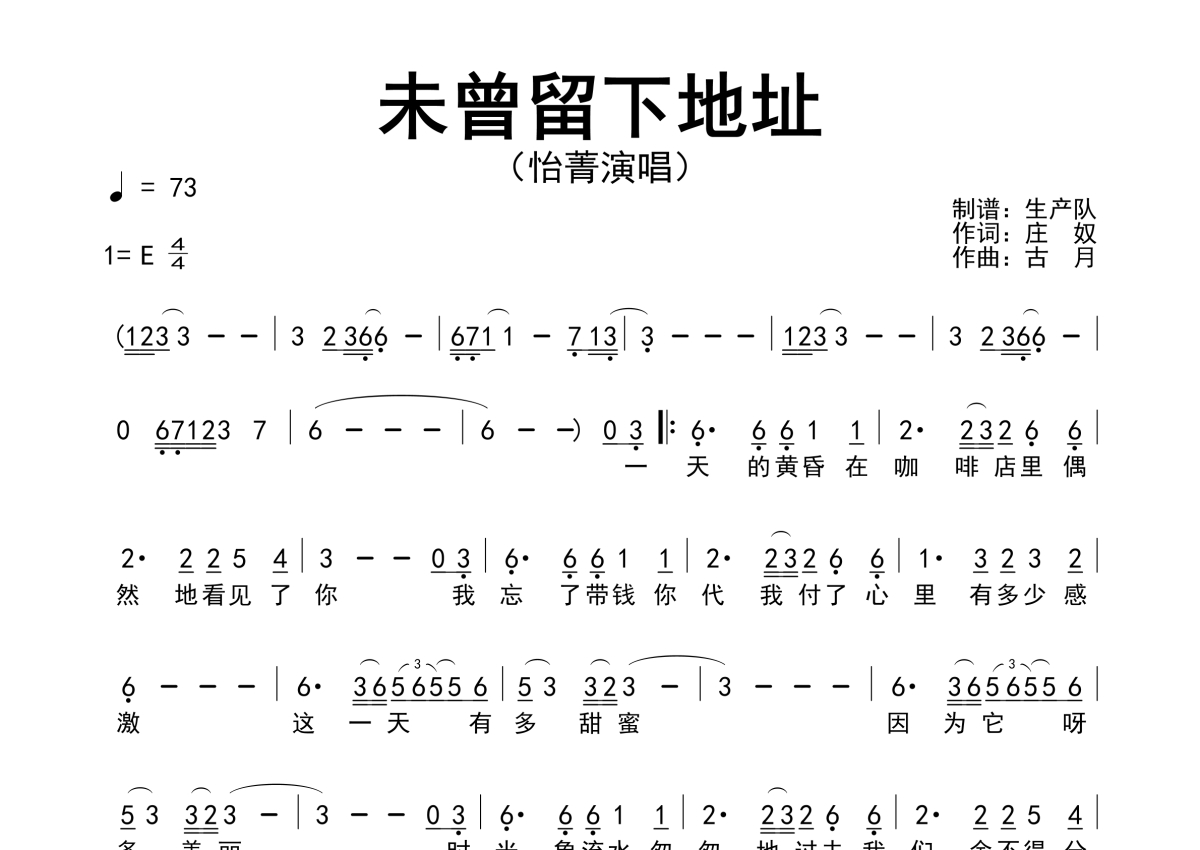 《未曾留下地址》是怡菁演唱的一首歌曲,这份简谱共有一张高清图谱,图谱由 @生产队 编配上传怡菁演唱的歌曲《未曾留下地址》简谱。