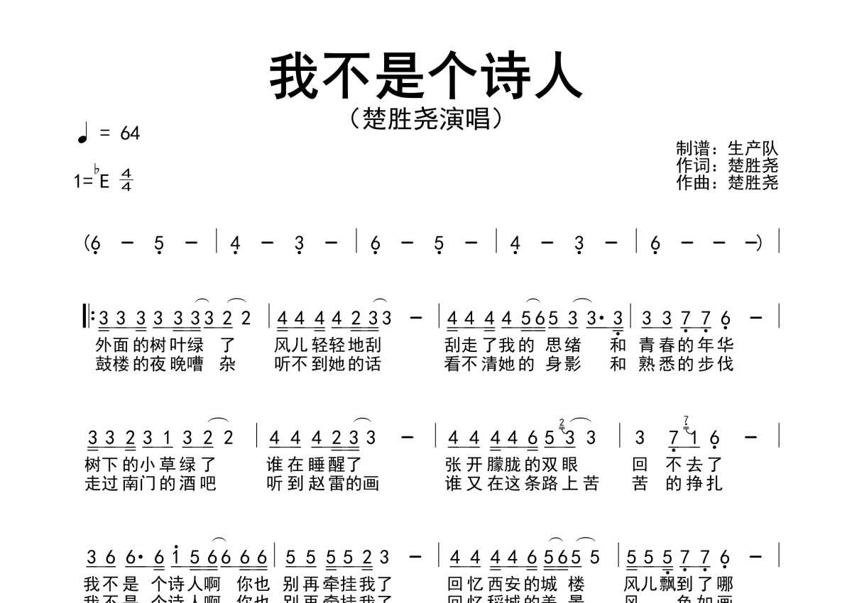 楚胜尧《我不是个诗人》简谱