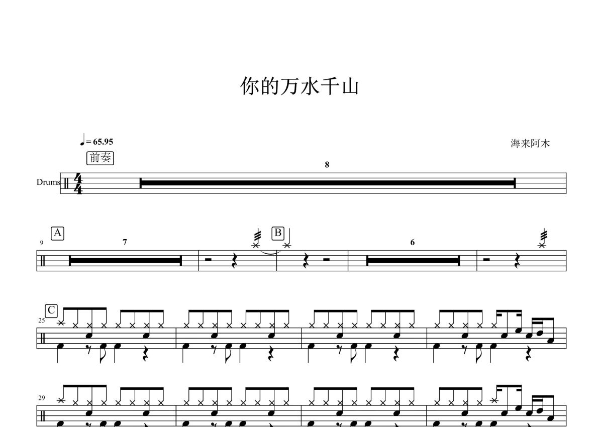 海来阿木《你的万水千山》鼓谱 - 架子鼓谱