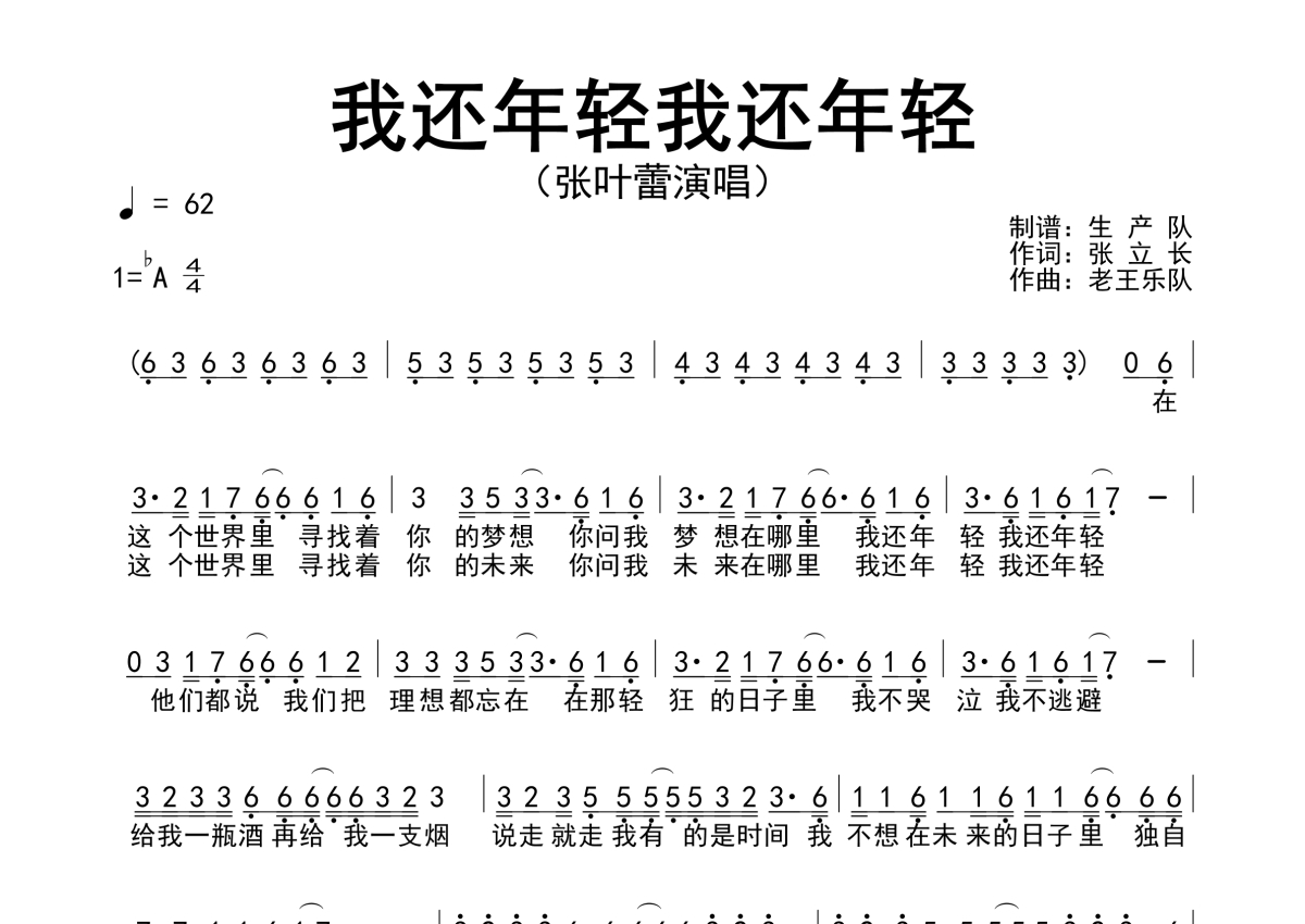 张叶蕾《我还年轻我还年轻》简谱