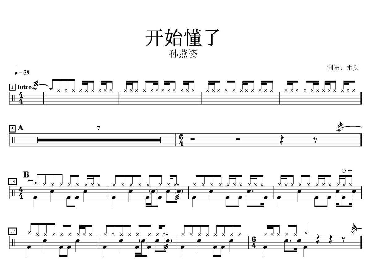 孙燕姿《开始懂了》鼓谱 - 架子鼓谱