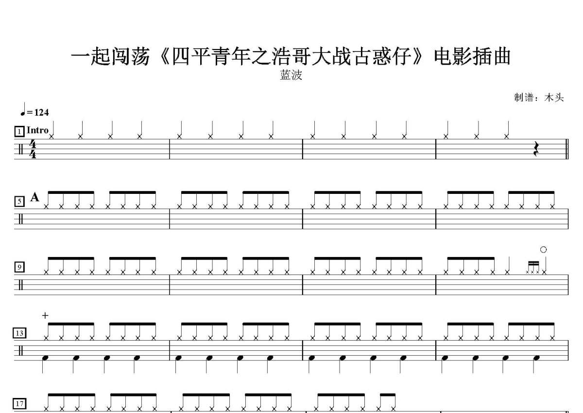 蓝波《一起闯荡》鼓谱 - 架子鼓谱 - (四平青年之浩哥大战古惑仔)电影插曲