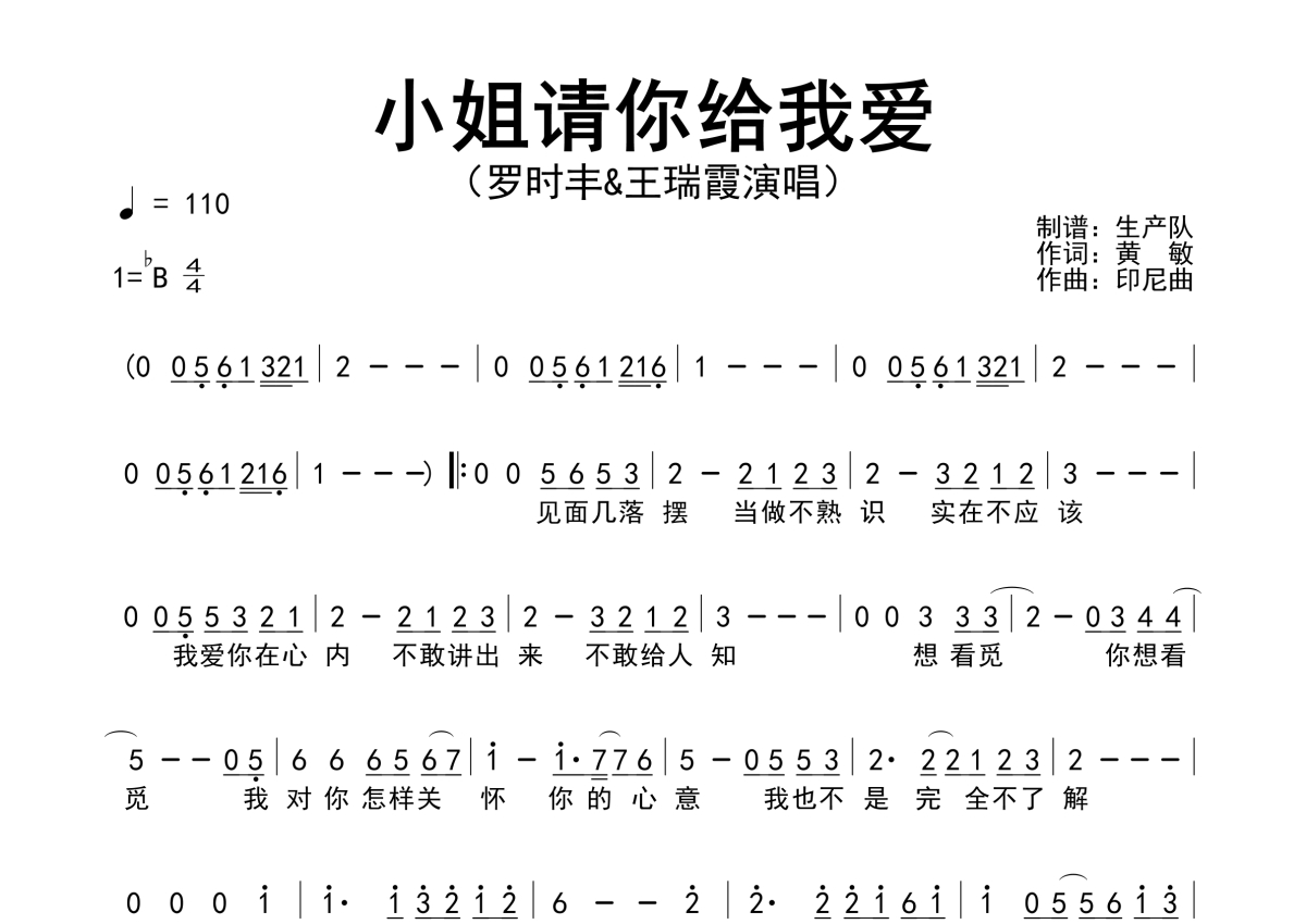 罗时丰/王瑞霞《小姐请你给我爱》简谱