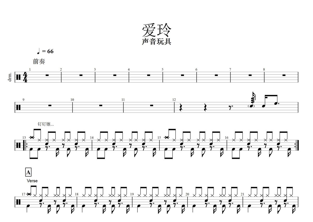 声音玩具《爱玲》鼓谱 - 架子鼓谱
