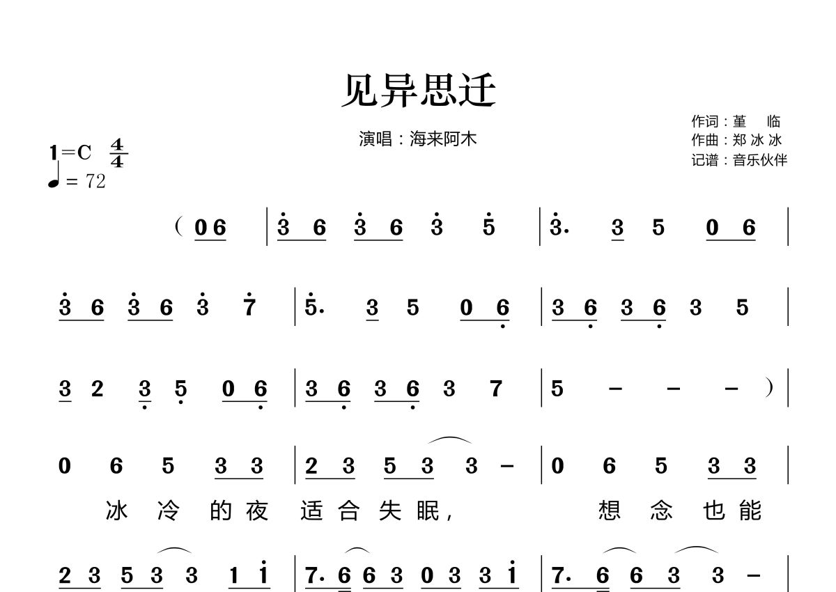 见异思迁简谱 - 海来阿木演唱