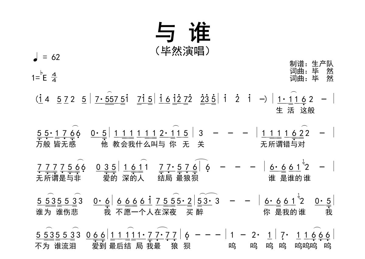 毕然《与谁》简谱