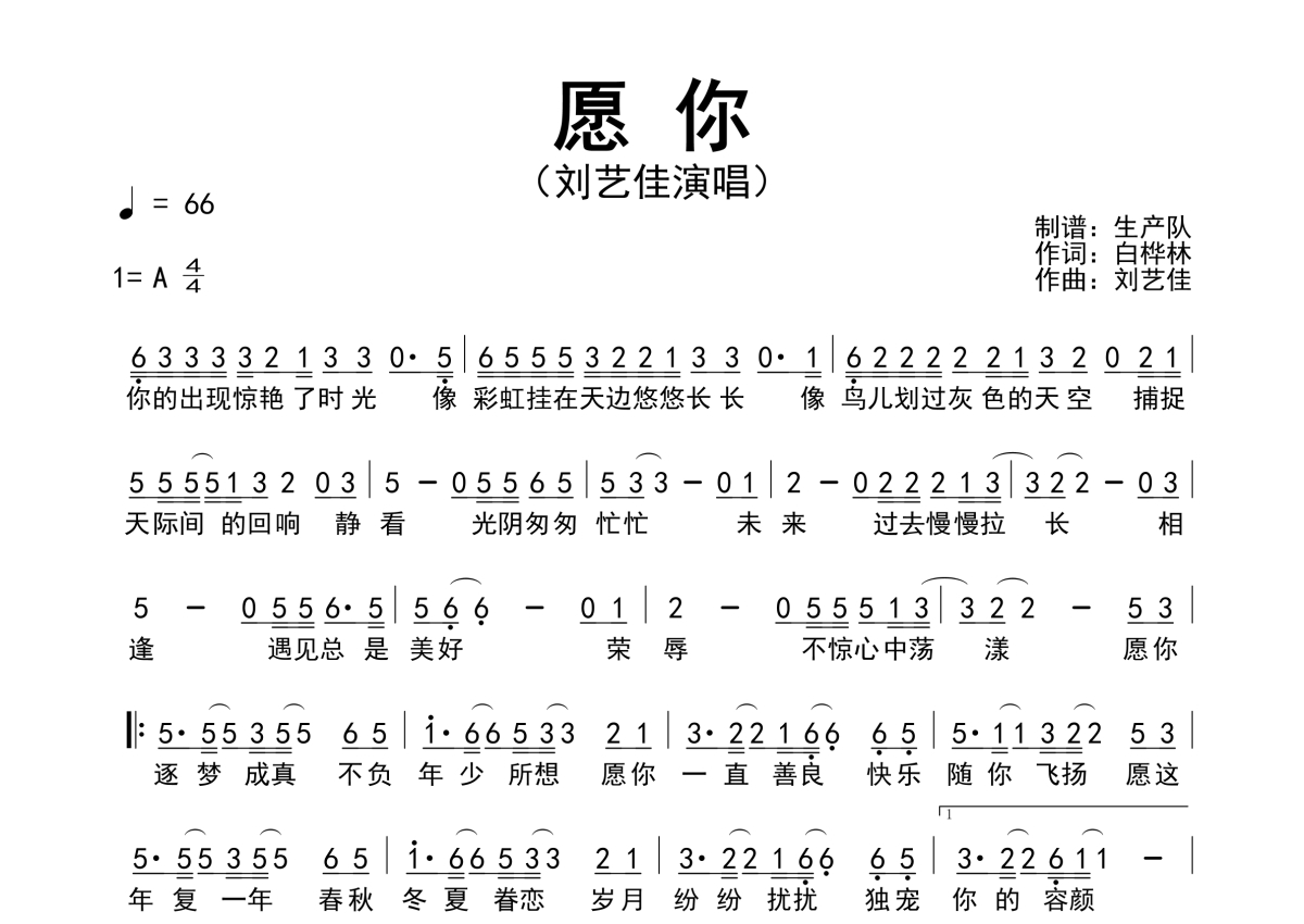 刘艺佳《愿你》简谱