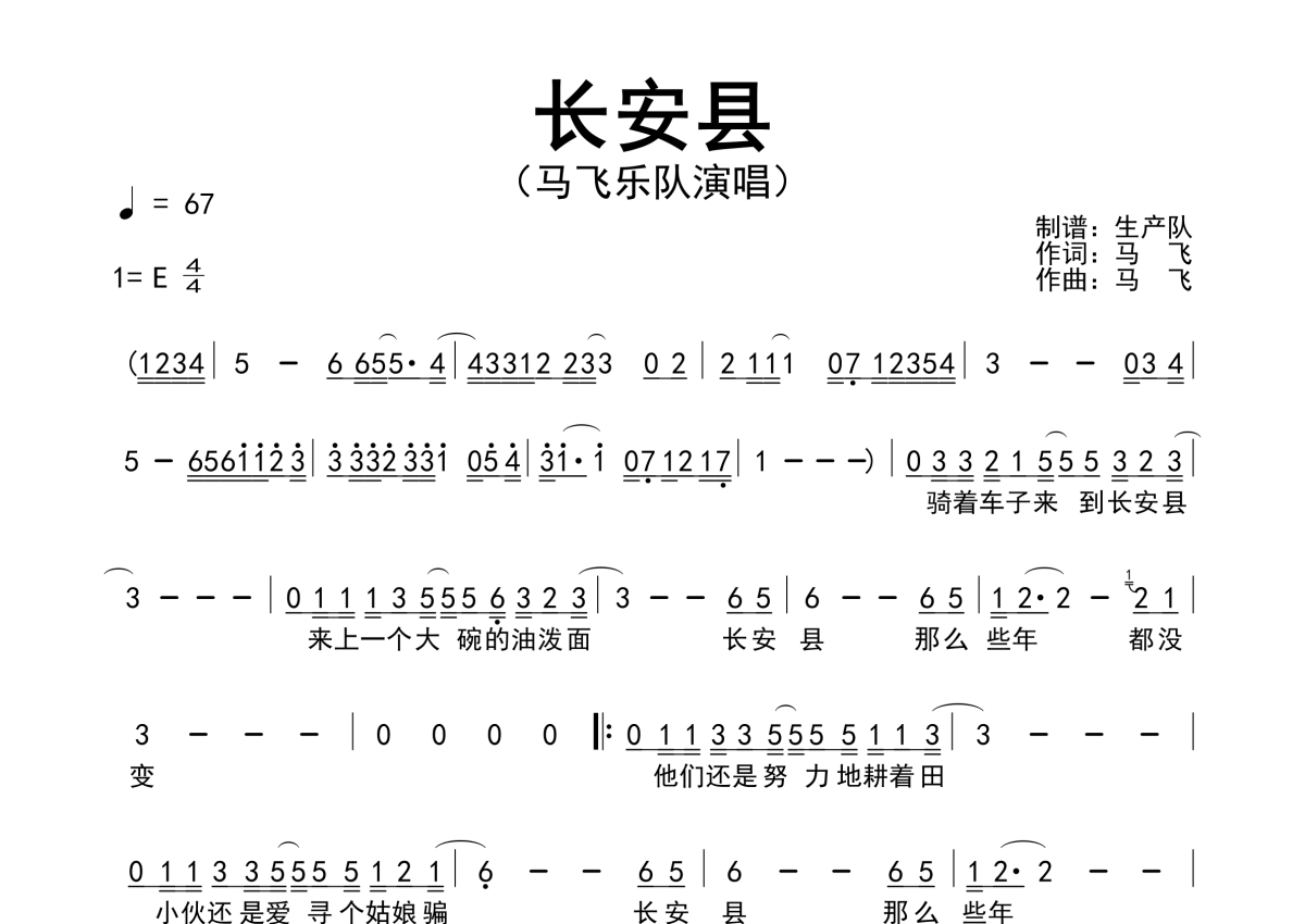 马飞乐队《长安县》简谱