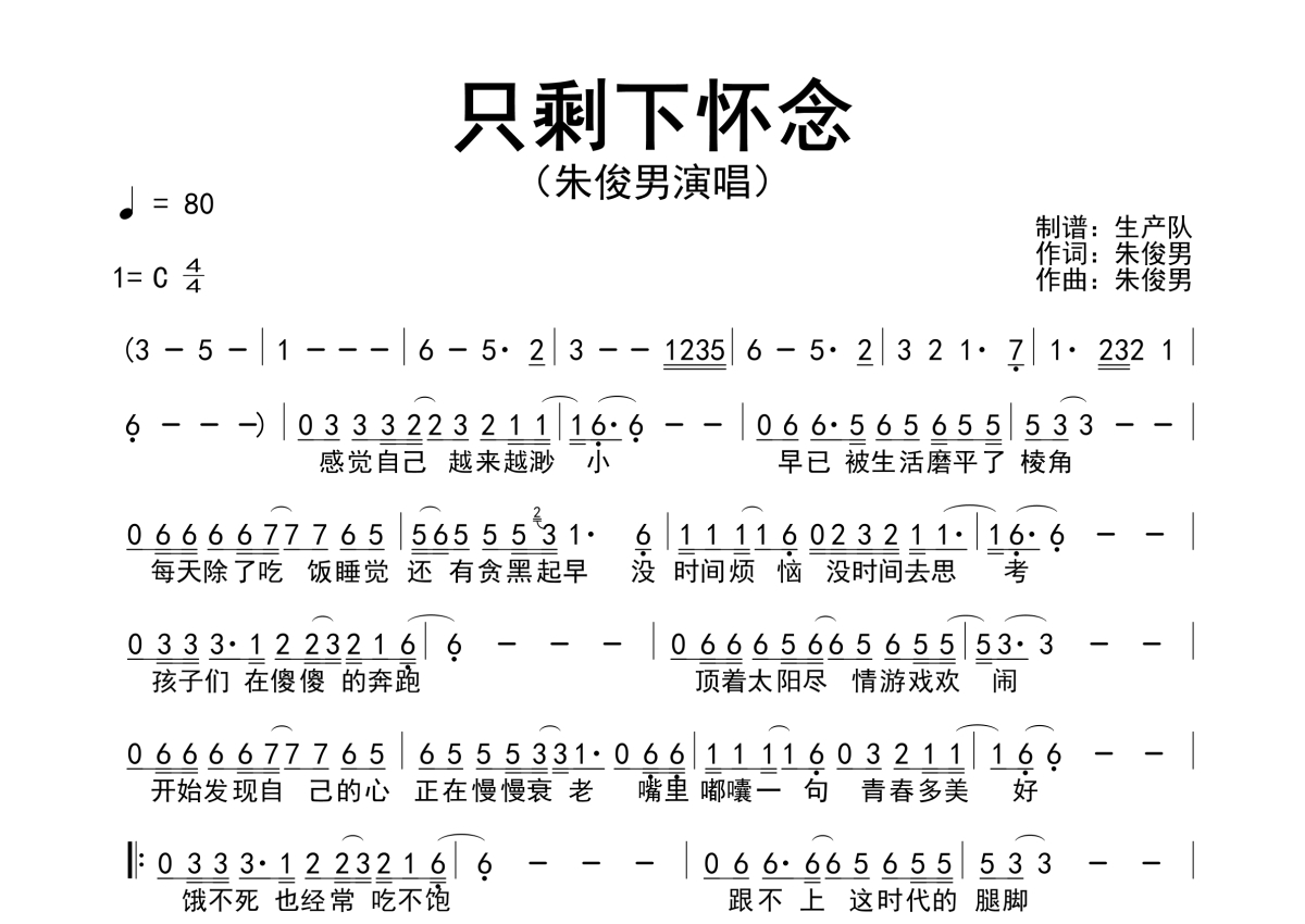 朱俊男《只剩下怀念》简谱