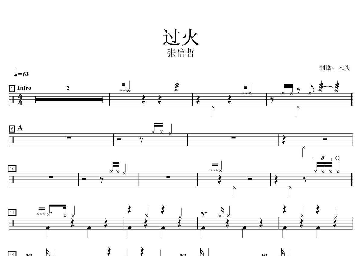 张信哲《过火》鼓谱 - 架子鼓谱
