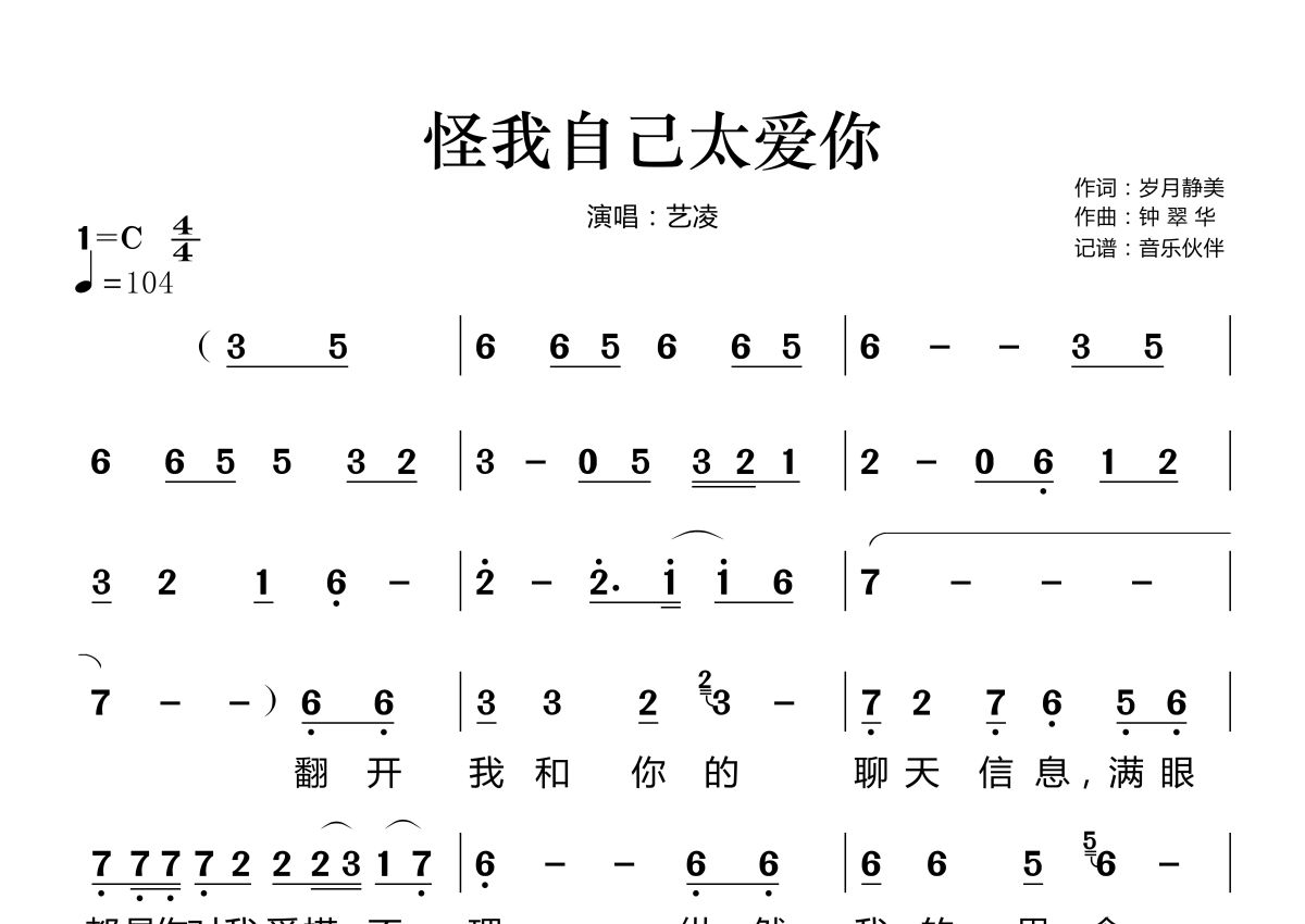 《怪我自己太爱你》是艺凌演唱的一首歌曲,这份简谱共有两张高清图谱,图谱由 @音乐伙伴 编配上传。