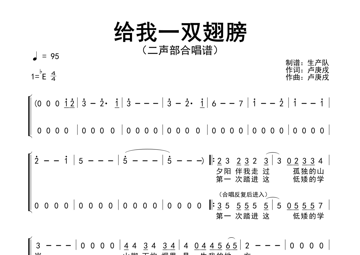合唱谱《给我一双翅膀》简谱 - 二声部合唱谱