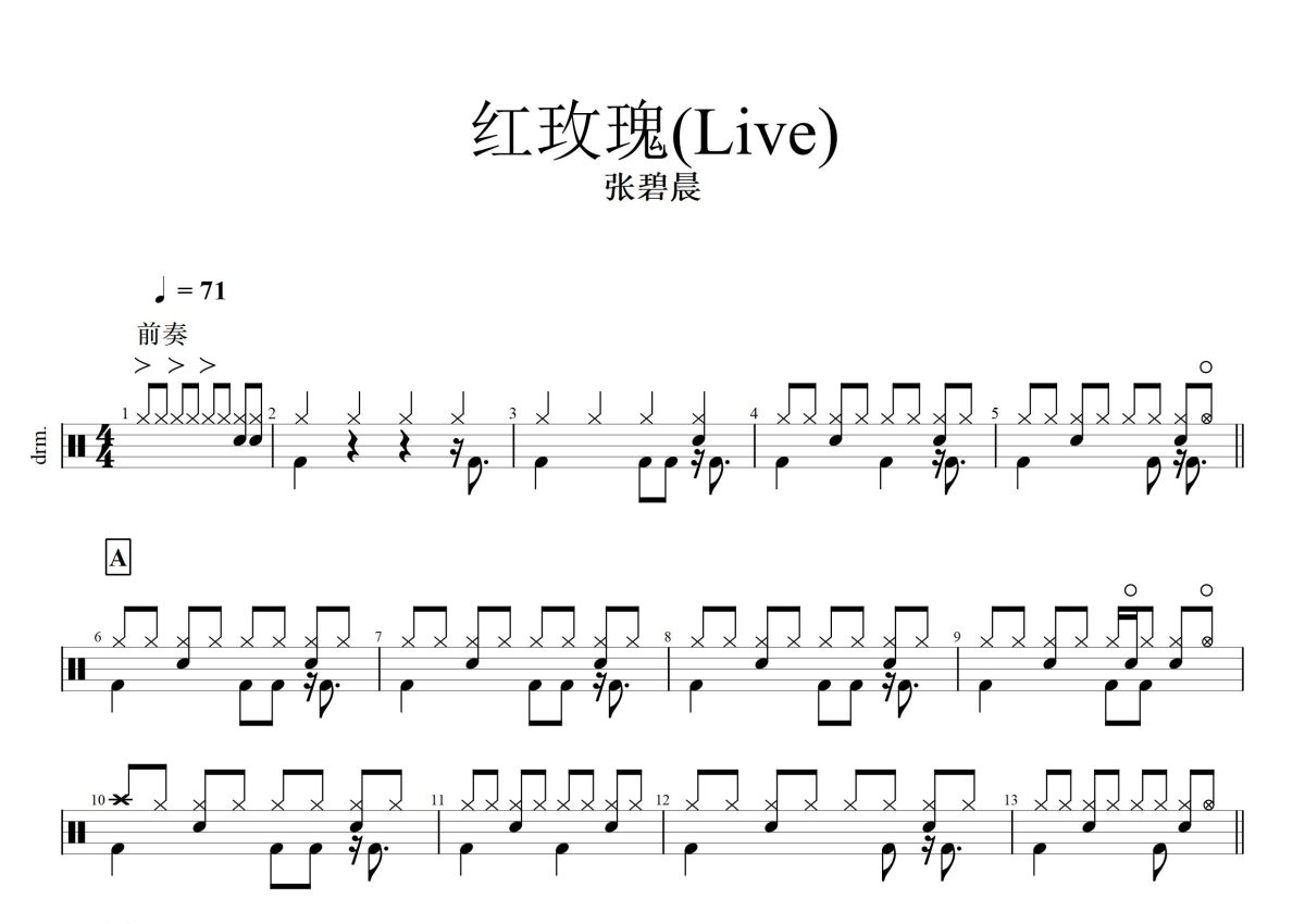 张碧晨《红玫瑰》鼓谱 - 架子鼓谱