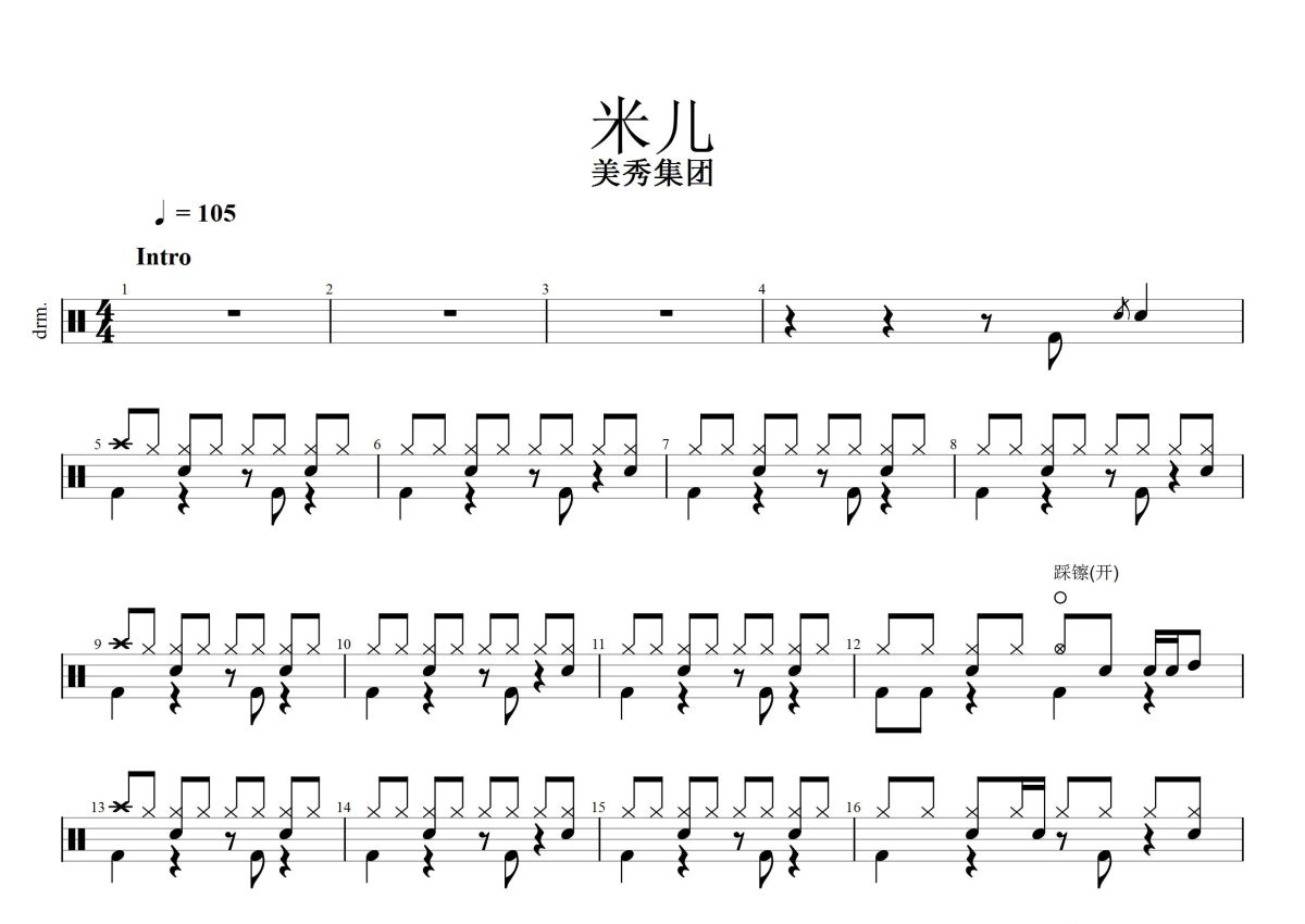 美秀集团《米儿》鼓谱 - 架子鼓谱