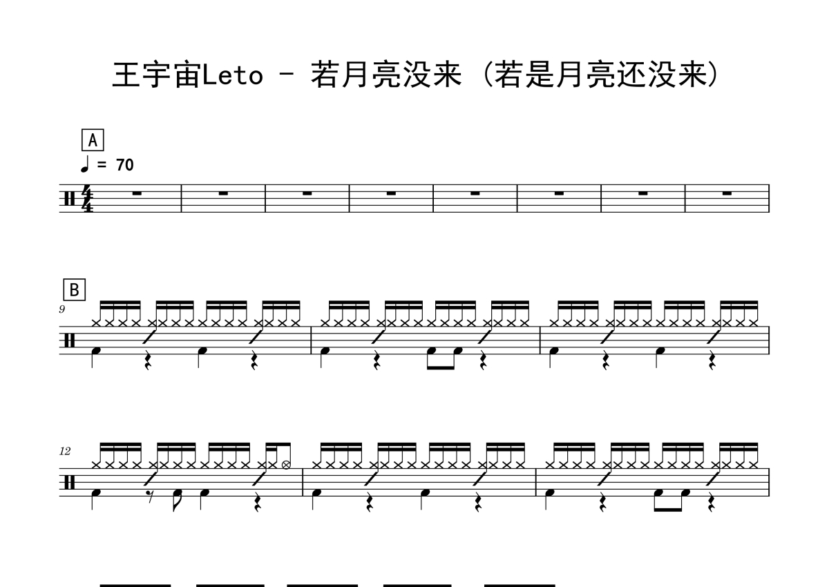 王宇宙Leto《若月亮没来 (若是月亮还没来)》架子鼓谱