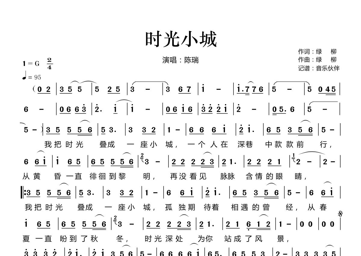 时光小城简谱 - 陈瑞演唱