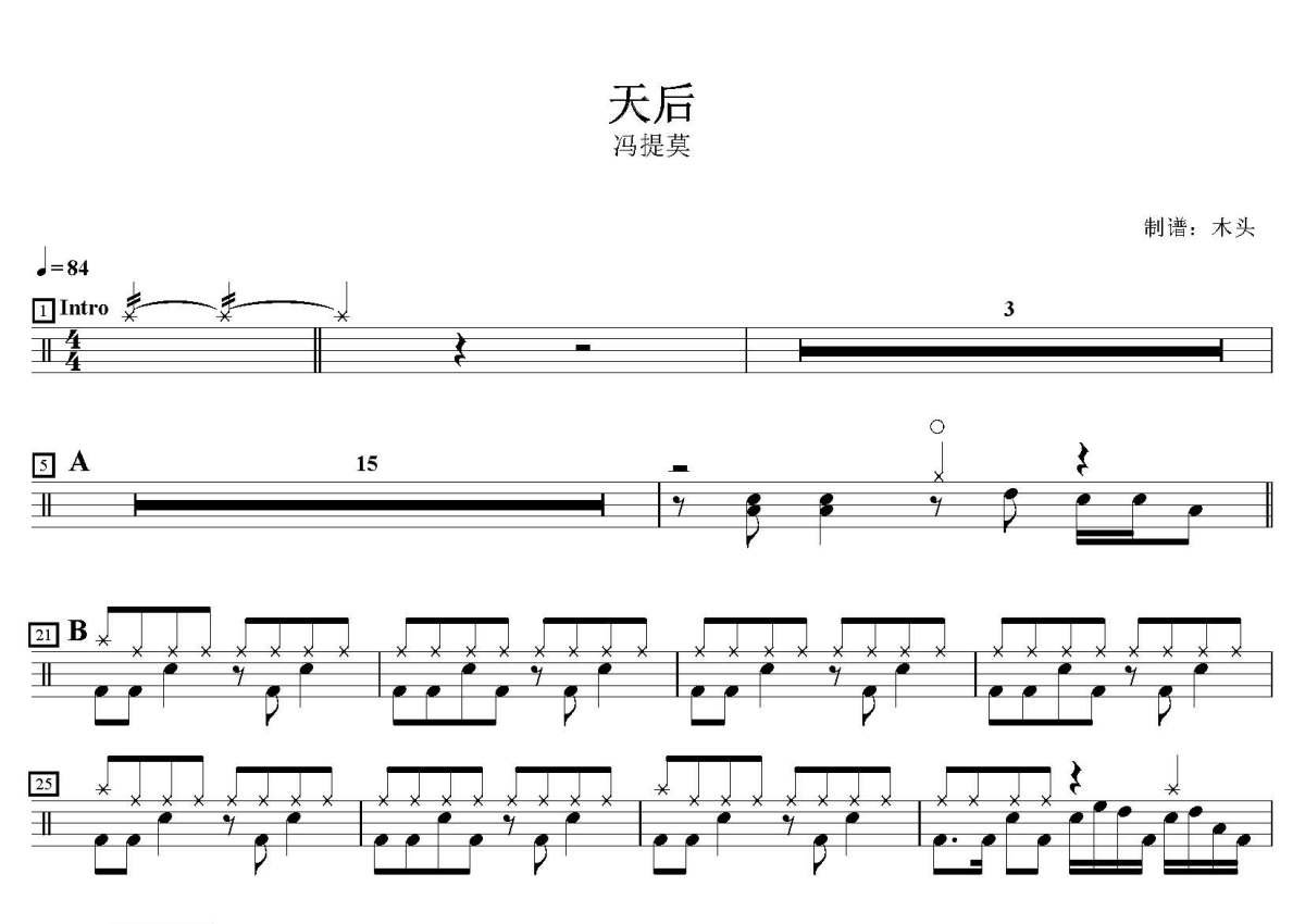 冯提莫《天后》鼓谱 - 架子鼓谱