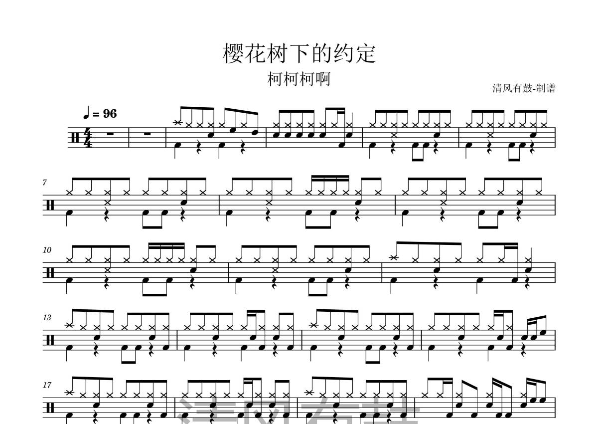 樱花树下的约定架子鼓谱 - 柯柯柯啊