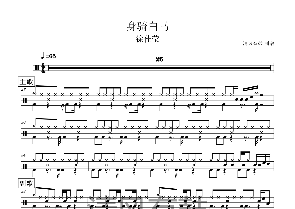 身骑白马架子鼓谱 - 徐佳莹