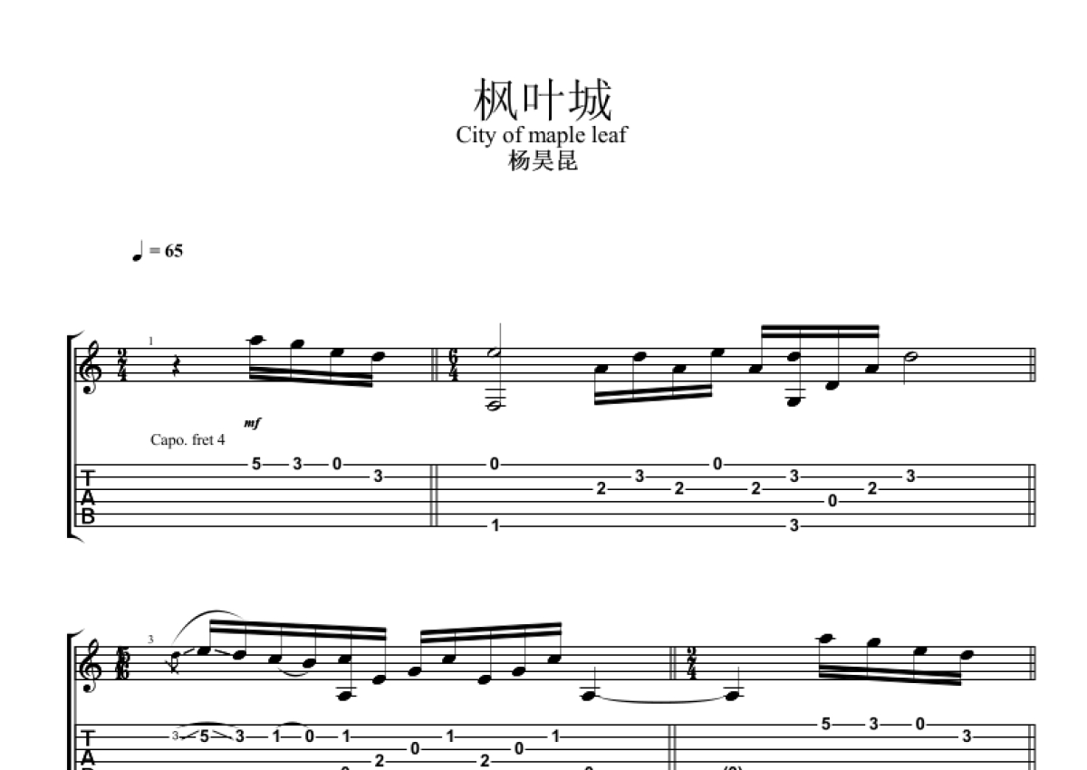 《枫叶城》是杨昊昆演唱的一首歌曲,本吉他谱采用的是C调指法编配,这份吉他谱共有五张高清图谱,图谱由 @音符喷血者 编配上传,图谱使用六线谱编配,使用这份枫叶城吉他谱,可以让你更加方便地掌握这首歌曲的演奏技巧,快来尝试吧。
