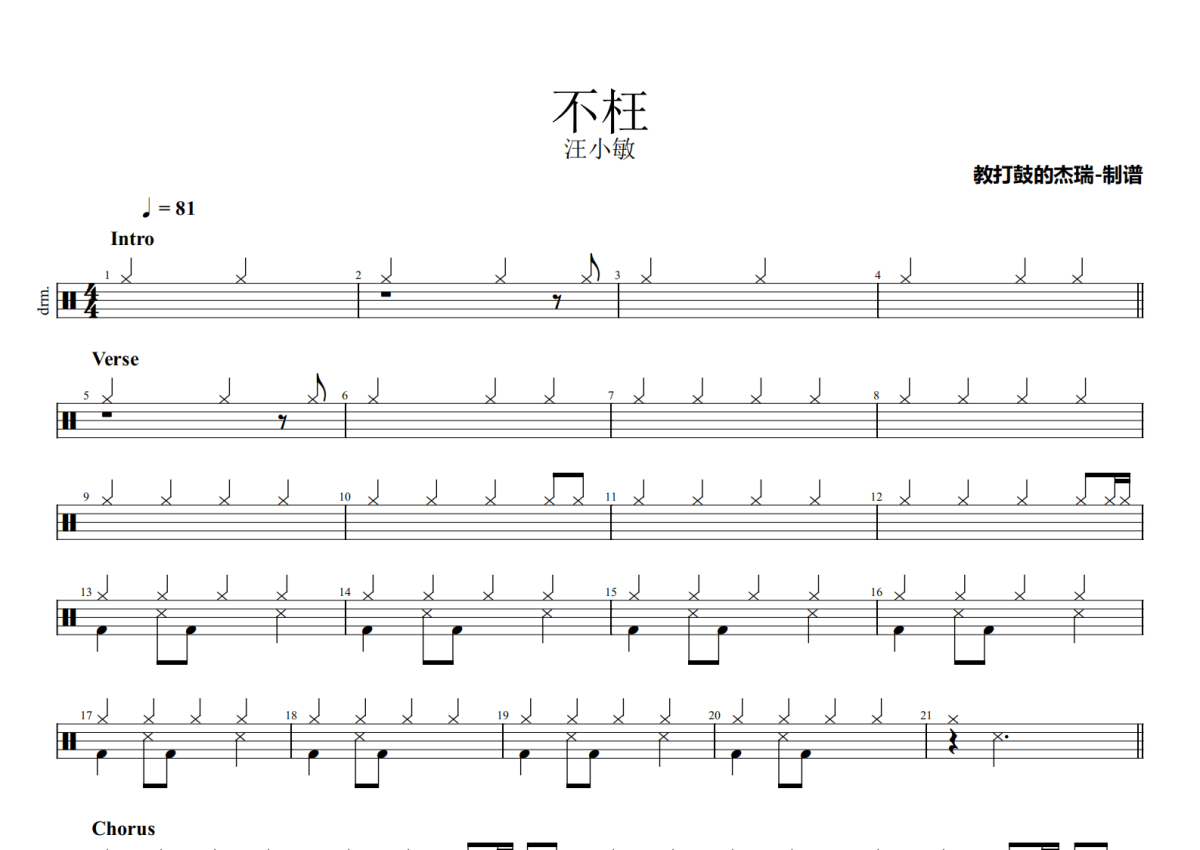 《不枉》是林依晨演唱的一首歌曲,歌曲速度为每分钟66拍,这份架子鼓谱共有两张高清图谱,图谱由 @Jerry 编配上传,图谱使用五线谱编配,使用这份不枉架子鼓谱,你将能够轻松地敲打出这首林依晨的不枉,快来尝试吧。