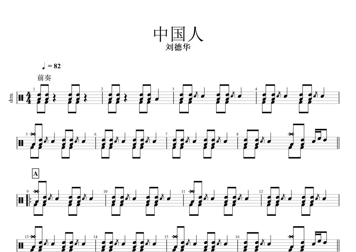 刘德华《中国人》鼓谱 - 架子鼓谱