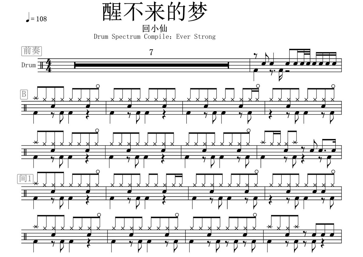 回小仙《醒不来的梦》鼓谱 - 架子鼓谱