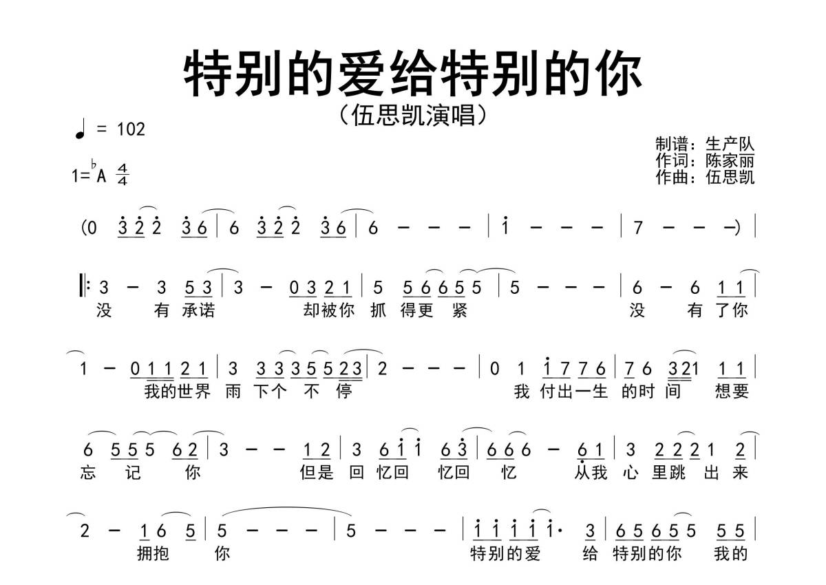 伍思凯《特别的爱给特别的你》简谱 - 原版简谱