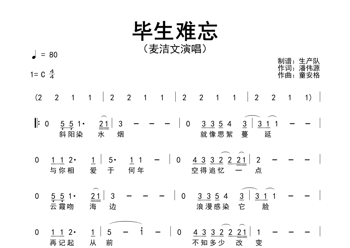 麦洁文《毕生难忘》简谱