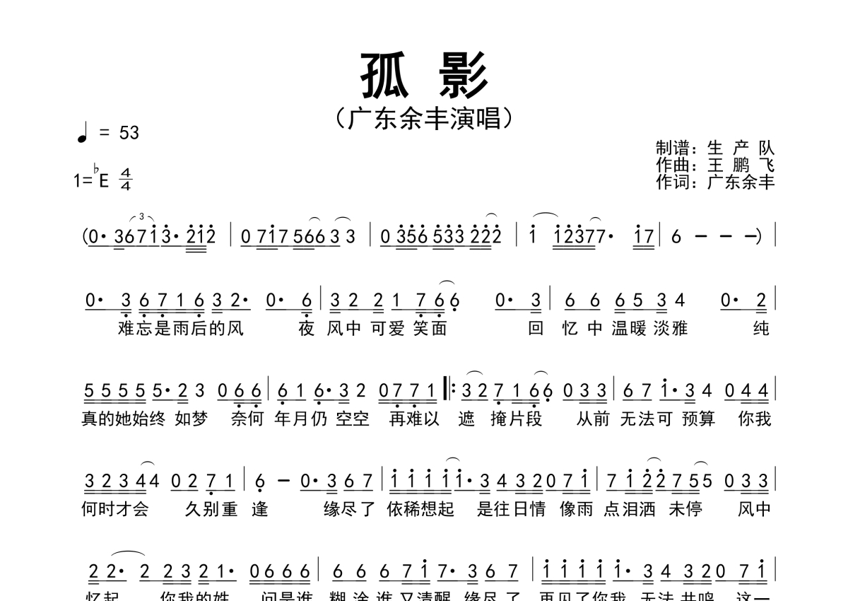 广东余丰《孤影》简谱
