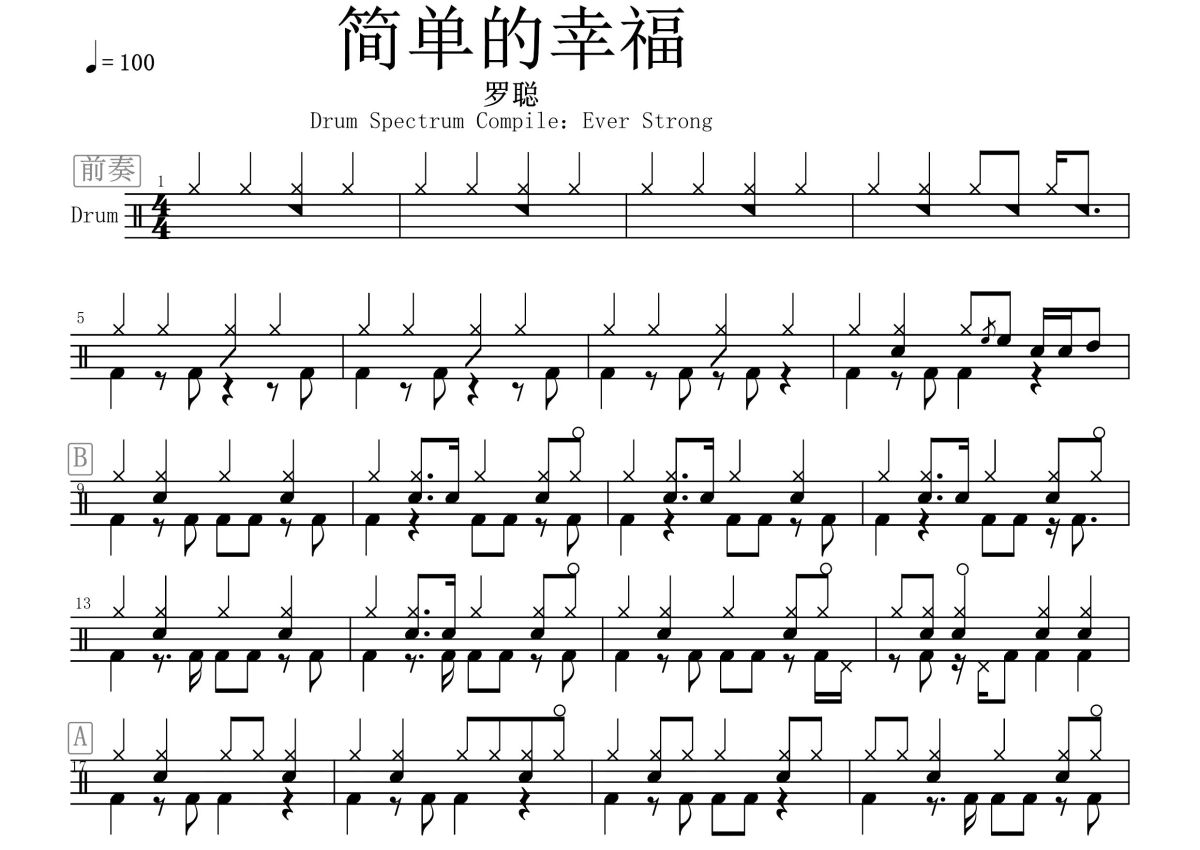 罗聪《简单的幸福》鼓谱 - 架子鼓谱