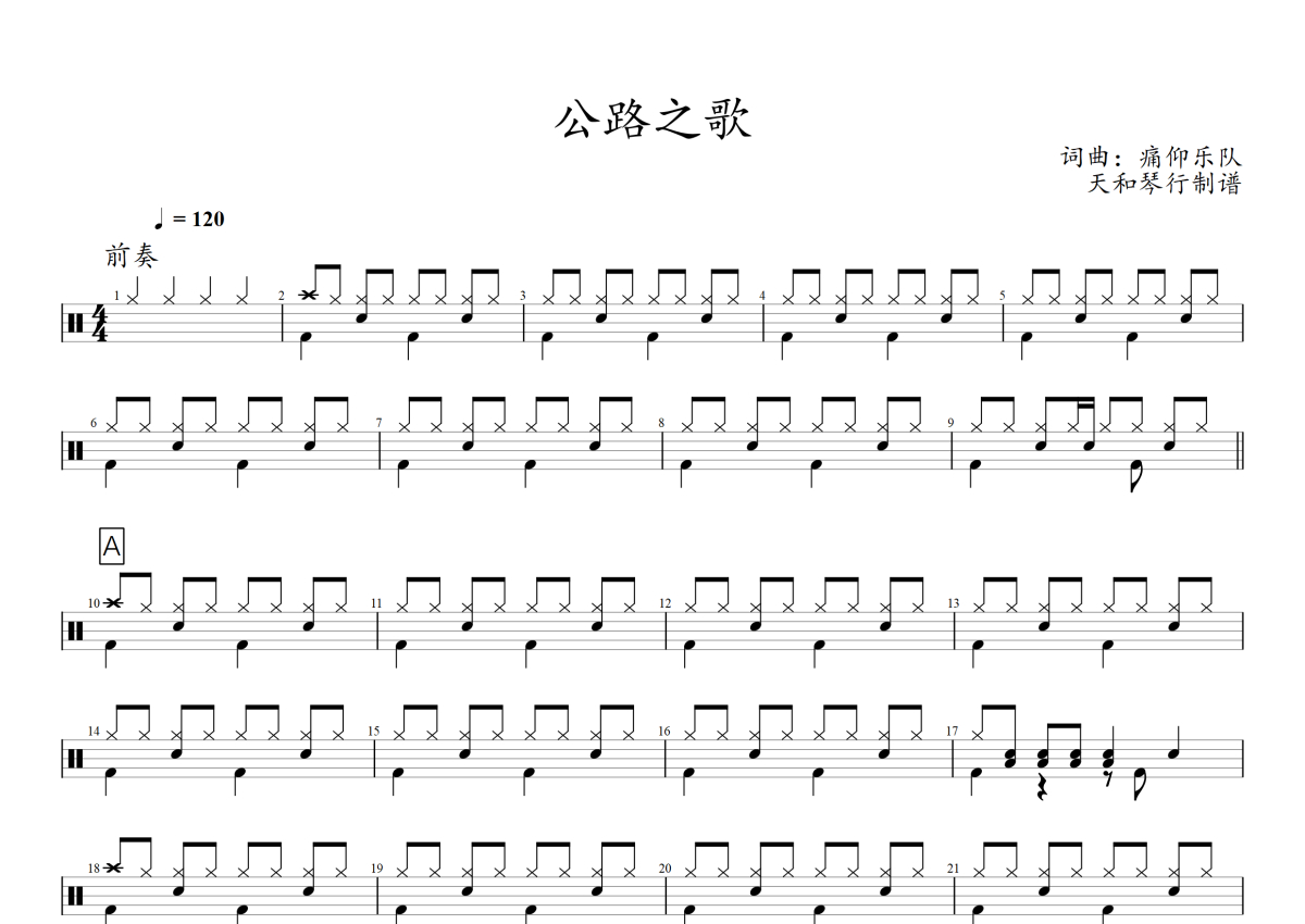 《公路之歌》是痛仰演唱的一首歌曲,拍号为4/4拍,歌曲速度为每分钟120拍,这份架子鼓谱共有两张高清图谱,图谱由 @音符喷血者 编配上传,图谱使用五线谱编配,使用这份公路之歌架子鼓谱,你将能够轻松地敲打出这首痛仰的公路之歌,快来尝试吧。