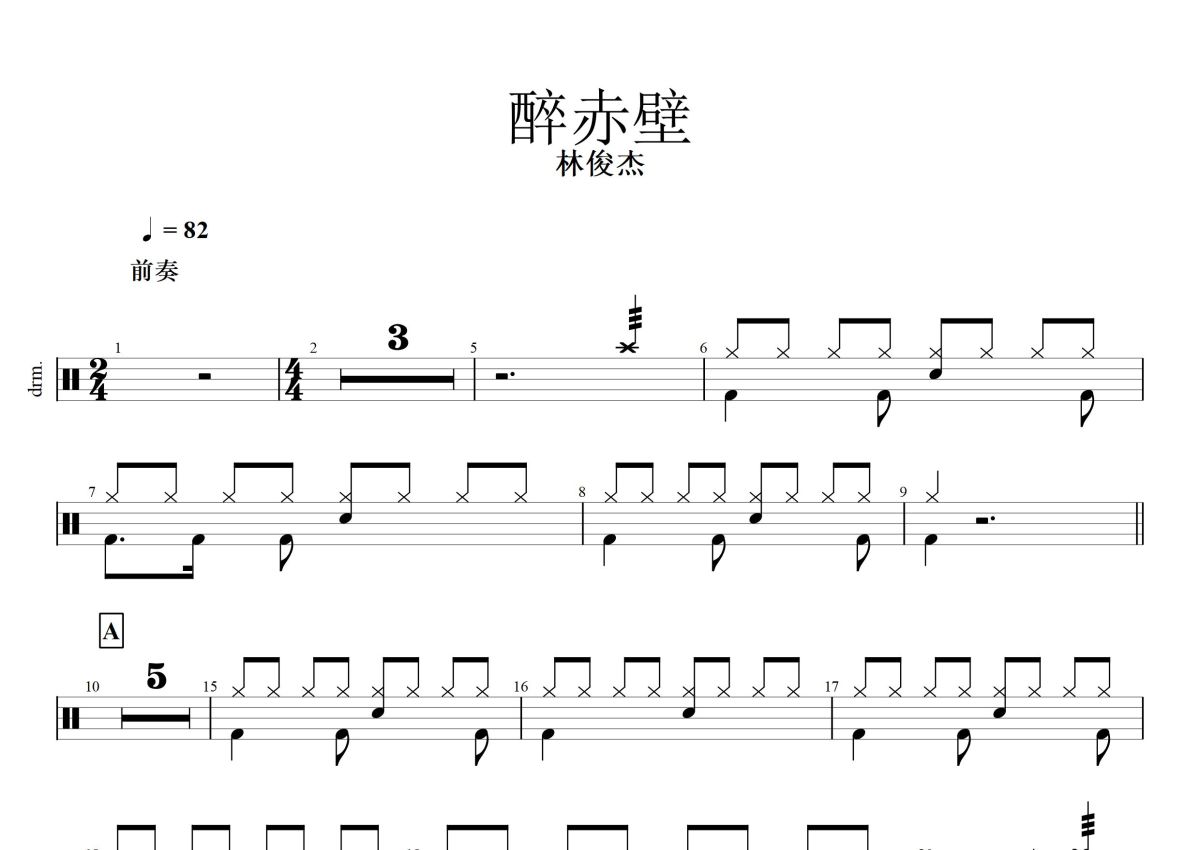 林俊杰《醉赤壁》鼓谱 - 架子鼓谱