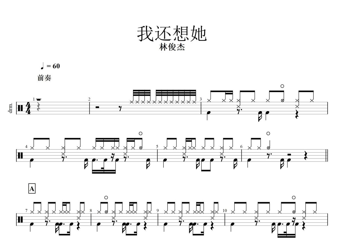 林俊杰《我还想她》鼓谱 - 架子鼓谱